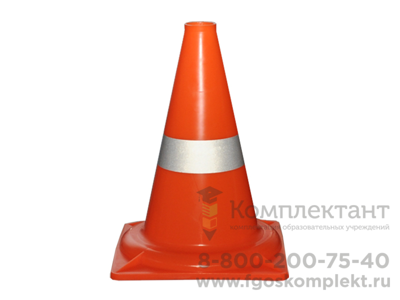 Сигнальный дорожный конус представляет собой техническое средство организации дорожного движения в форме конуса оранжевого цвета с площадкой у основания и одной световозвращающей полосой.