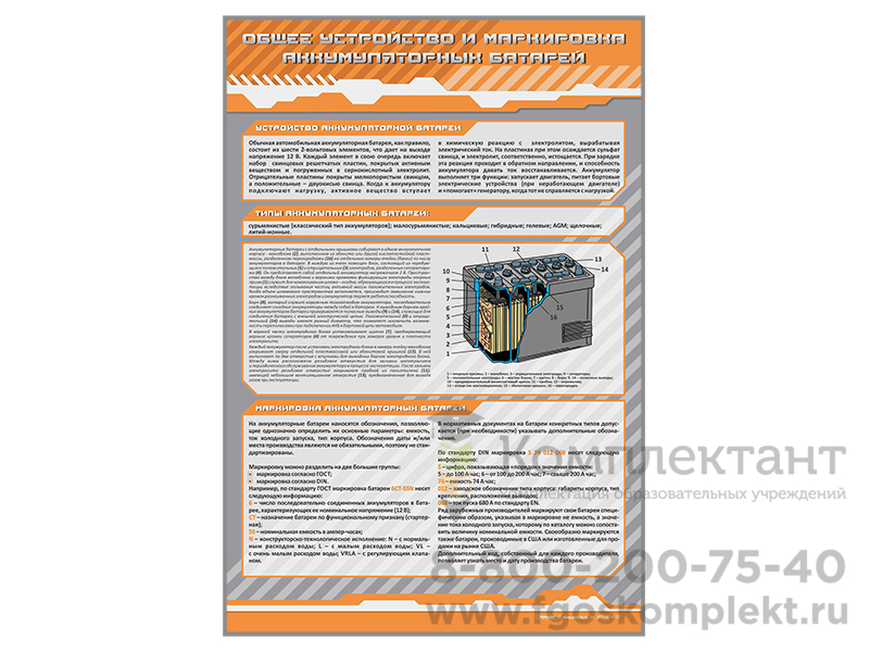 Стенд "Общее устройство и маркировка аккумуляторных батарей