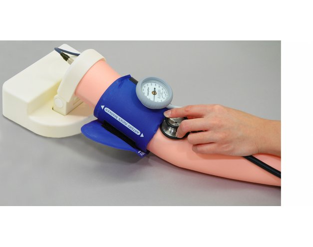 Имеет 9 предустановленных сценариев для отработки навыков измерения АД. Включает навыки наложения и раздувания манжеты, аускультацию тонов Короткова, пальпацию пульса на лучевой артерии, получение цифровых параметров АД.
